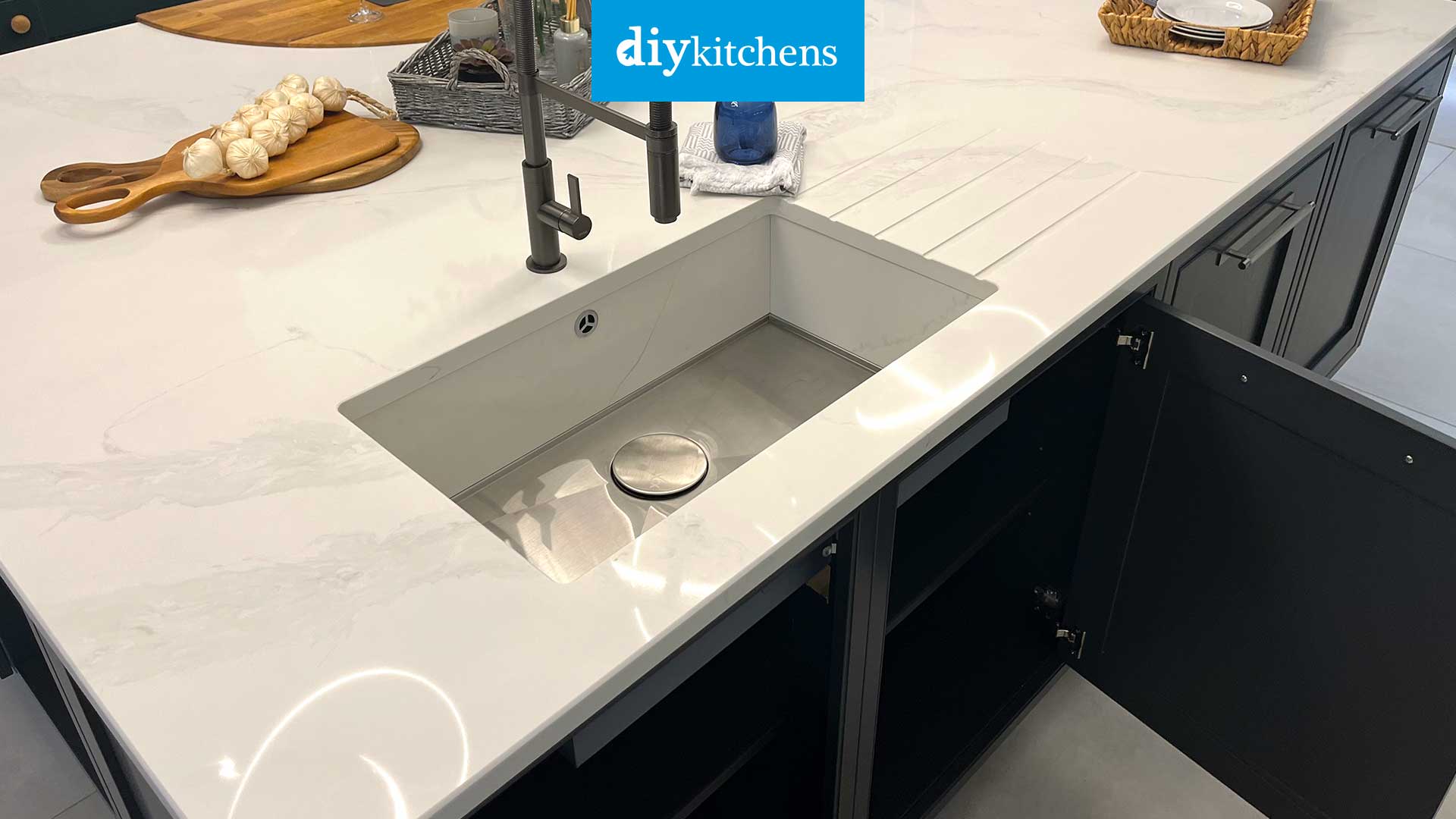 A common question asked about undermount sinks is that these types of sinks don’t have a draining board. Well, that is correct but if you are opting for a granite or quartz worktop then you can have some drainer grooves cut into your worktop! See the example below.